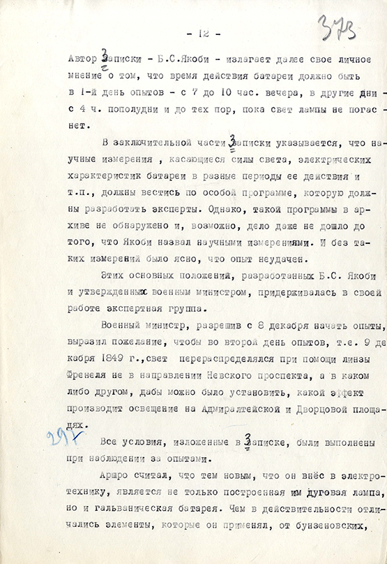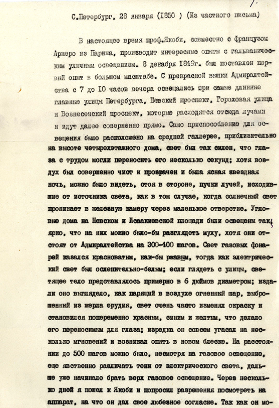 На сайте мы разместили два документа, хранящиеся в СПбФ ИИЕТ РАН, описывающие опыты 1849 г. – это выдержка из личного письма об опытах